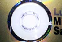 サンプル盤は、帯のバーコード部分に管理番号の入ったシールが貼られています。また、ディスクの中心部に黒文字で SAMPLE の印字があります。